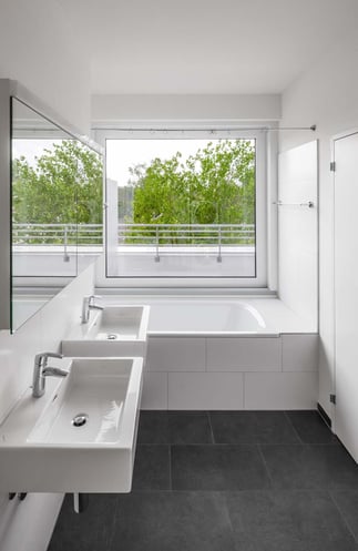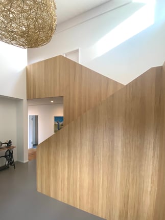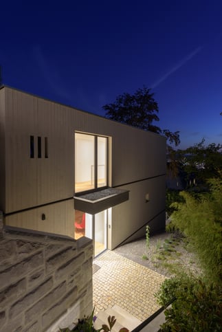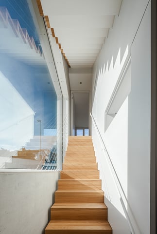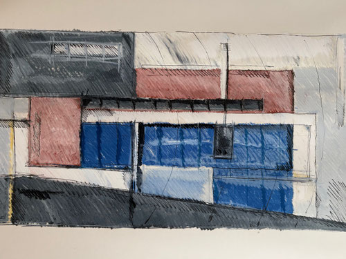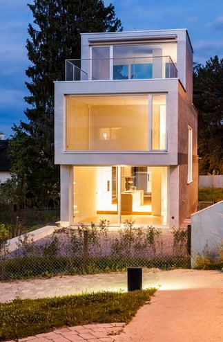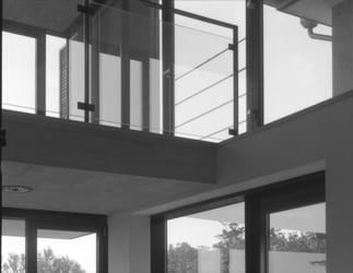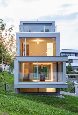 Neubau eines Einfamilienhauses auf einer sehr schmalen Restparzelle mit einer Längsfassade zu einer lärmbelasteten Kantonsstrasse