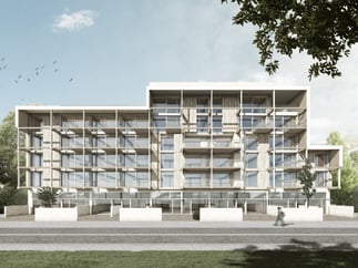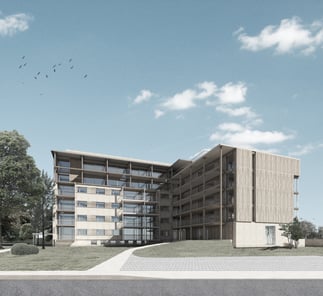 Wohnüberbauung mit 64 Wohnungen als Sanierung, Aufstockung und Erweiterung