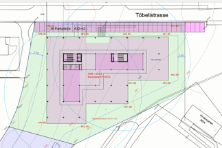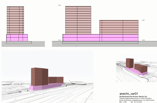 Machbarkeitsstudie in einer bahnhofsnahen Zone mit Gestaltungsplanpflicht. Vorschlag für eine kombinierte Überbauung mit Gewerbe und Wohnen.